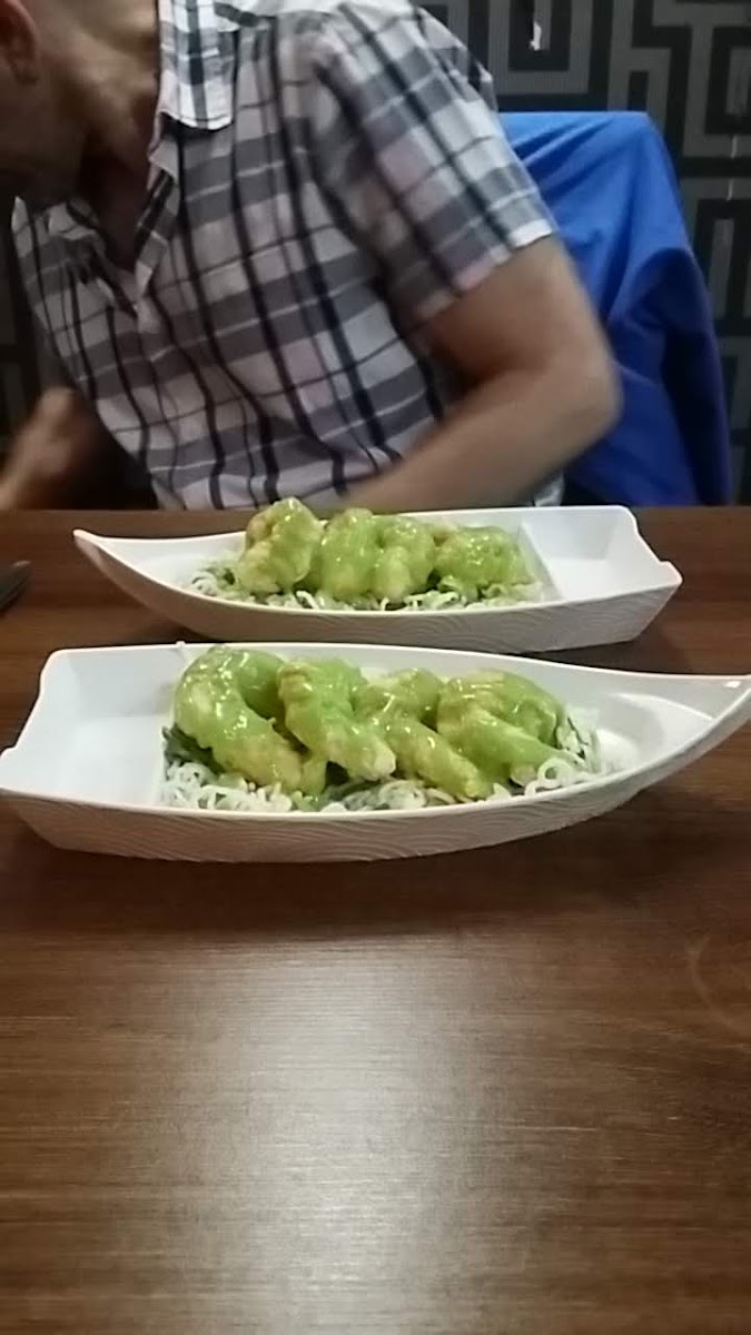 WASABI PRAWNS! We love the Zen Cafe. The waitress was lovely and as eclectic as the place itself. We ordered a Zen Combo (duck and pork in a yummy sauce), honey ribs (sweet and soft), egg fried rice and sweet wasabi prawns. Everything was really tasty but the sweet wasabi prawns were spectacular! Wasabi is spicy like mustard but the sauce on these prawns had only a hint of wasabi and sweetness. If you are ever in Folkestone at least try the wasabi prawns.